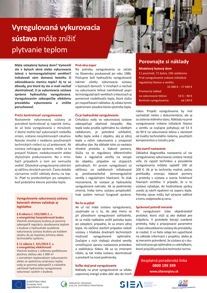Máte zateplený bytový dom? Inštalovali vám domovú kotolňu či odovzdávaciu stanicu tepla? Vymenili ste v bytoch okná alebo vykurovacie telesá s termoregulačnými ventilmi? Aj to sú dôvody, aby ste si nechali skontrolovať, či je vykurovacia sústava vo vašom bytovom dome správne hydraulicky vyregulovaná.